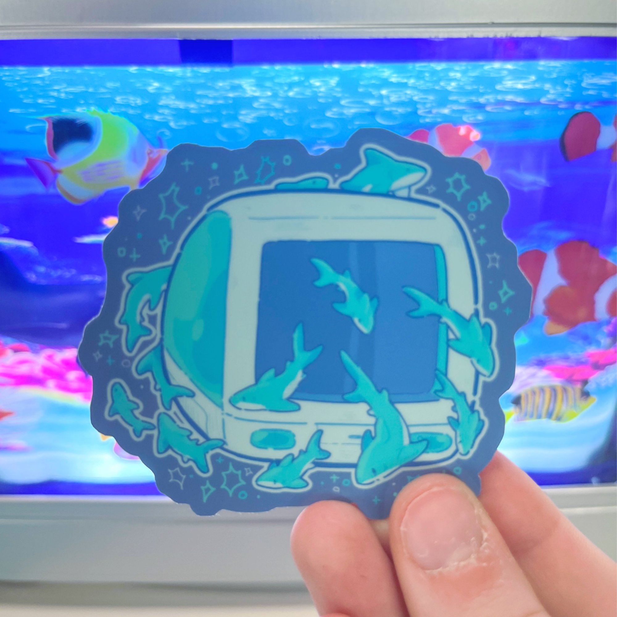 🩵🦈shark retro monitor glossy premium sticker🖥️💿