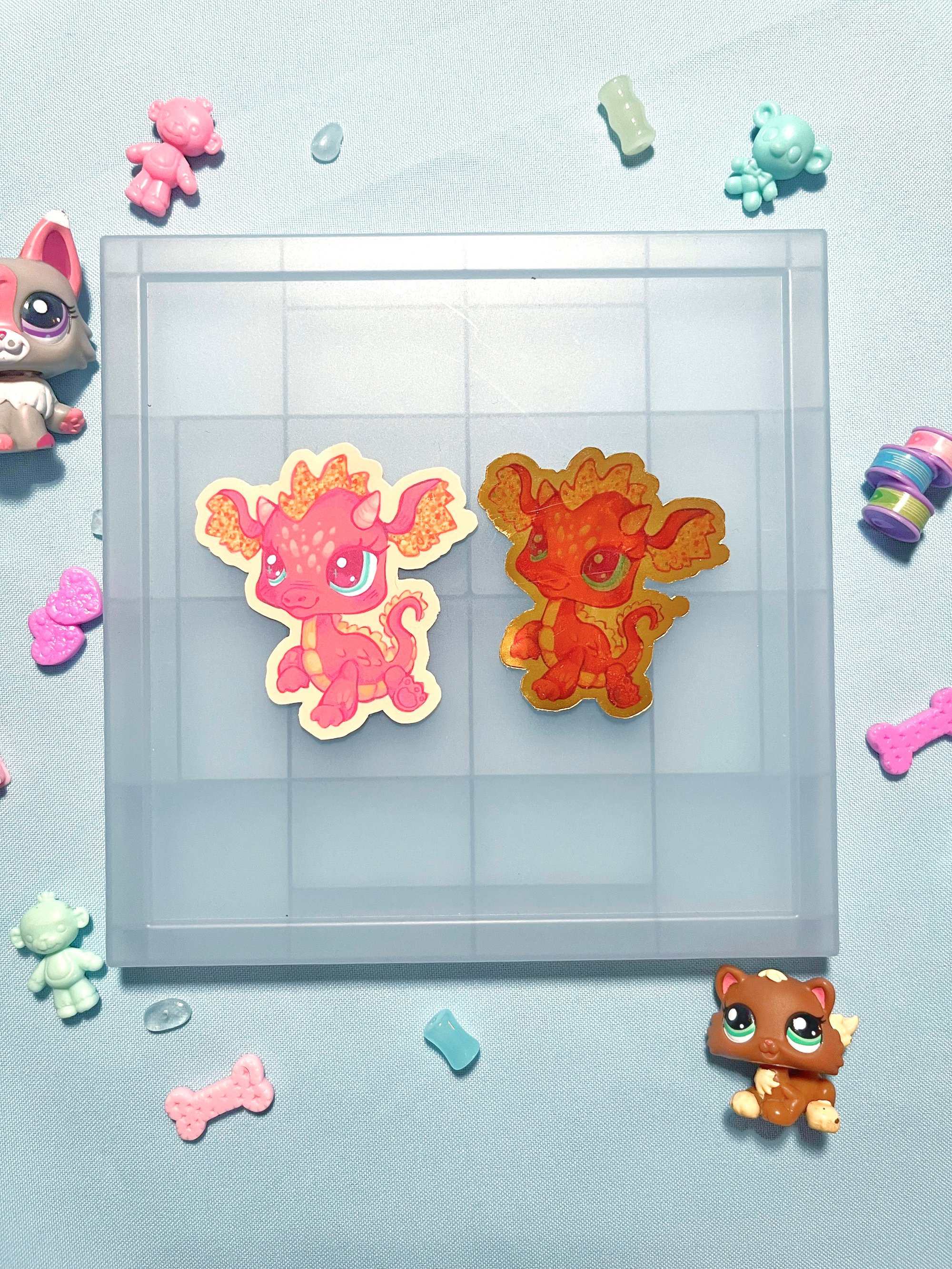 The cute and pretty red lunar new year LPS dragon - as stickers and keychains!