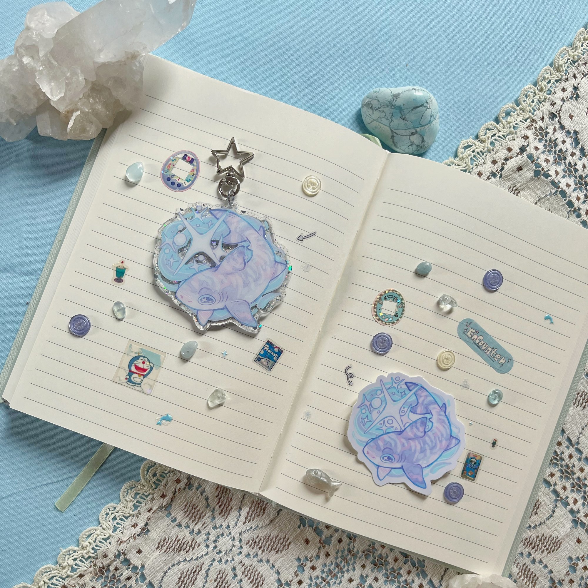 ⭐️Holo glitter acrylic keychain and sticker🦈